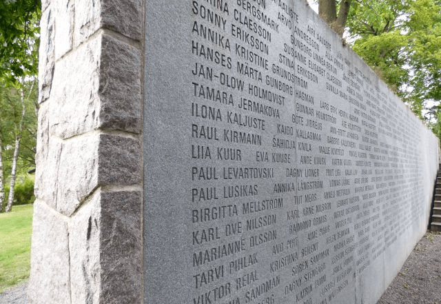 I Estoniamonumentet intill Galärkyrkogården på Djurgården i Stockholm finns 815 namn. Det var 852 som omkom. Eftersom vi själva fick välja om namnet skulle ristas in så valde 37 att inte göra det. Dock lämnades plats till namnet om man i framtiden skulle ändra sig.