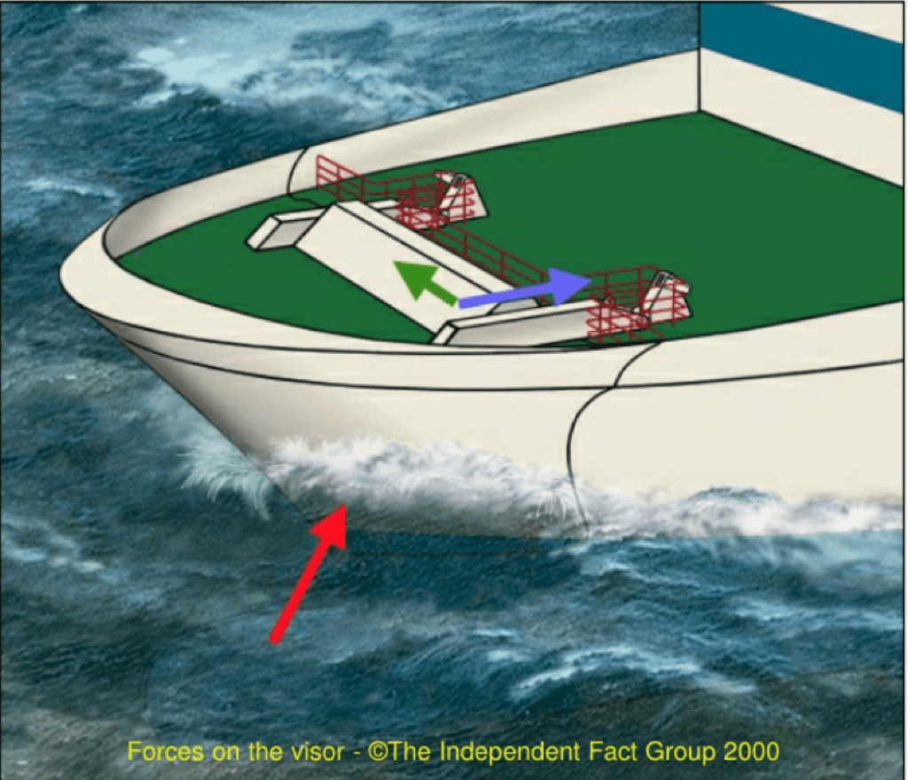 Ironiskt nog antog kommissionen dock korrekt att den tvärgående däcksbalken faktiskt var ”det tyngsta strukturella elementet som förhindrade visiret från att röra sig framåt”.