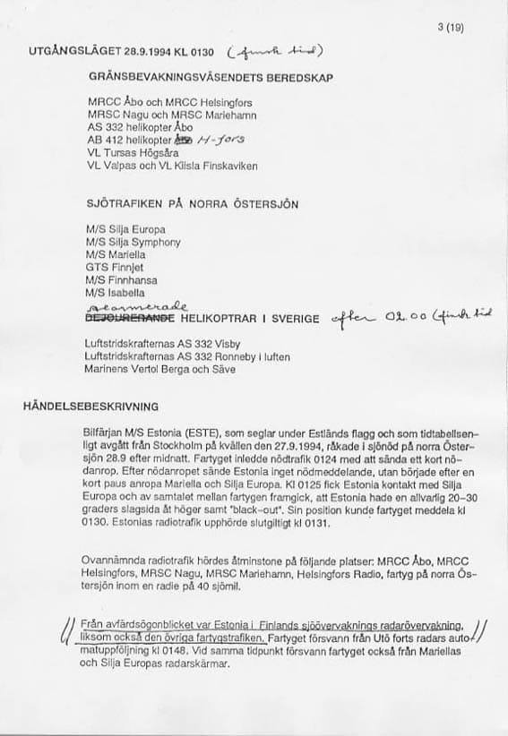 Det har i sin tur att göra med att man inte ville visa att Estonia gick i ”normal” fart på samma sätt som Mariella och Silja Europa eftersom det skulle visa att vädret inte alls var så svårt som man påstår. Det blåste bara runt 15 meter i sekunden i verkligheten. Men genom att Estonia skulle gått en sydligare rutt gjorde att hon måst gått långsammare vilket då besannar antagandet att det blåste närmast storm.