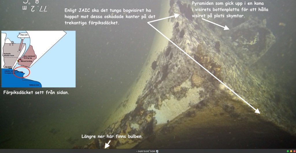 Till exempel har SHK för inspelning två valt att lägga den videofilm som bara visar en liten del av det däck (förpik-däcket) som visiret stod på. Därmed undanhålls de videosekvenser som filmades av de andra kamerorna vilket till exempel medför att det inte framgår att kanten, som enligt JAIC orsakat stora skador på visirets bottenplatta när det 64 ton tunga visirets skulle ”hoppat” upp och ner, är oskadad.