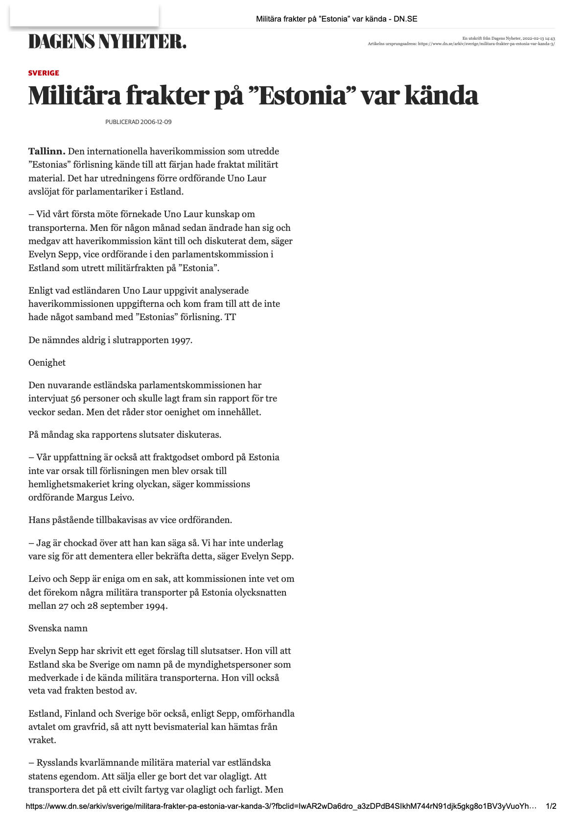 https://www.estoniaferrydisaster.net/pdf/Enclosure40.pdf… (Intervju med Evelyn Sepp som blev en estnisk visselblåsare liksom Lennart Henriksson var en svensk visselblåsare)