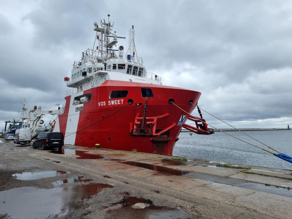 Bild på fartyget, se bifogat. VOS Sweet. Ett holländskt arbetsfartyg. Samma fartyg kommer användas på nästa expedition där man går vidare med att detaljskanna med annan teknik, fotogrammetik.