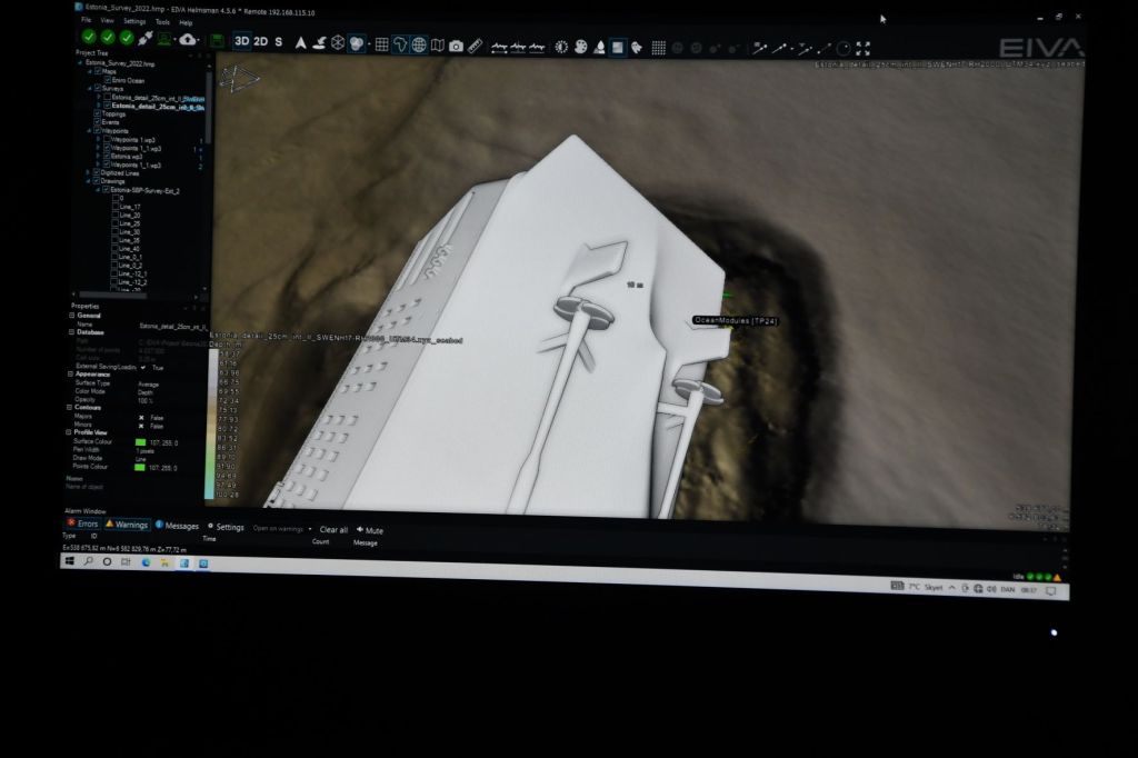 Allt är sig likt ombord det tuffar på med fotogrammetrin bilder tas med hög kvalitet och jag pendlar mellan däck, kontrollrum och visningsrum. På däck finns två containrar med var sitt kontrollrum för ROVna. De är små och det är trångt. Just nu är det kompletterande bilder av akterskeppet, roder och propellrar. Vi har ännu inte kommit till att fotografera det som visades i dokumentären. I morgon kommer *SSRS ut med en forskare från **SU som ska ta bottenprover på det svarta områden som ser brända ut vilket vissa tror och andra tror det är bakterier eller alger som lever av svavelföreningar – under 80 m finns väldigt lite syre. Jag tror detta med provtagning kommer bli problematiskt då det ska skrapas och det ska falla ner i en behållare och allt detta ska ske i vattenmassan.