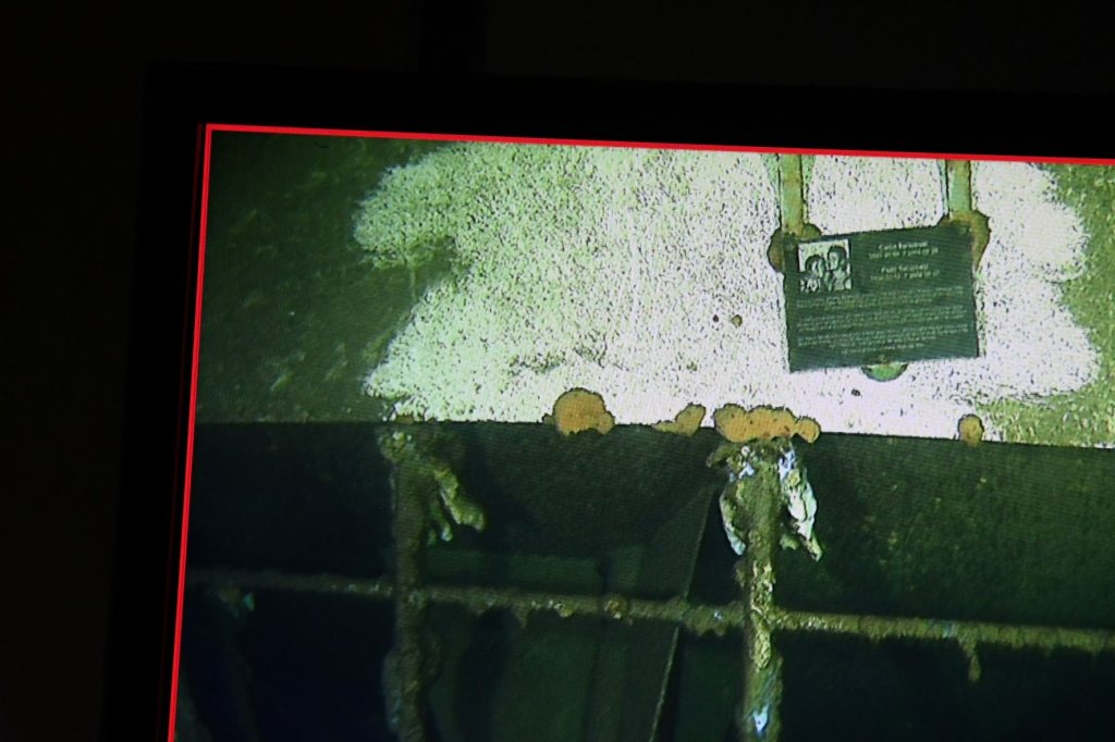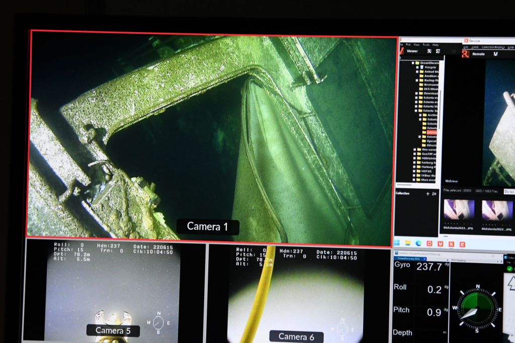 Idag har vi fortsatt fotogrammetrin, vi har hoppat lite på grund av varierade siktförhållanden. Vi har filmat kring *BB bryggvinge och ner mot fördäcket, lite i aktern och framför allt nere vid botten runt om hela fartyget i stort sett och in mot centrum av ovansidan. Vi passerade vid BB bryggvinge Carita och Peter Barasinkis minnesplakett, gripande och den visste jag inte fanns. Jag har trott att Peters försök att ”dyka” på platsen helt hade förhindrats av den svenska isbrytaren som lagts att bevaka platsen. Detta före den s k gravfridslagen trätt i kraft.